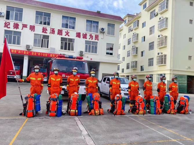 地震发生后,德宏州消防救援支队在盈江前置备勤的3车27人赶赴震中盈江县勐弄乡(目前距离震中还有50公里,约1小时车程)。