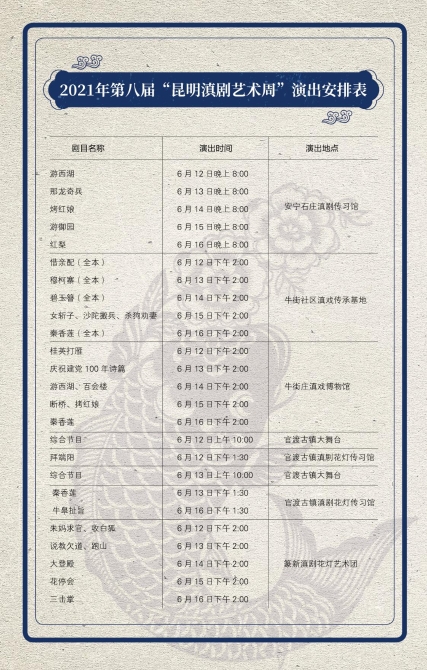 附:2021年第八届“昆明滇剧艺术周”演出安排表