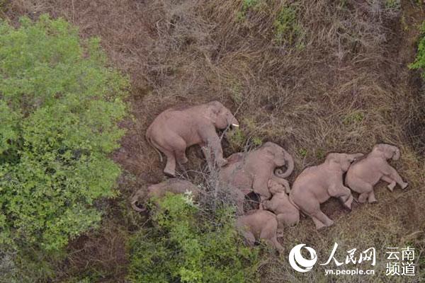 6月7日9时27分,云南省森林消防总队无人机监测任务分队监测显示,亚洲象群在晋宁区夕阳乡赖家新村山林地里睡觉。云南省森林消防总队供图