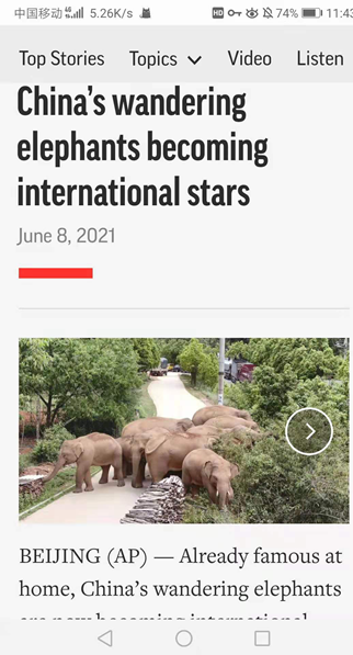 ▼▼▼美联社在“中国游荡的象群成为国际明星”报道中为中国点赞:大象在中国受到最高级别的保护,它们数量在稳步增加。