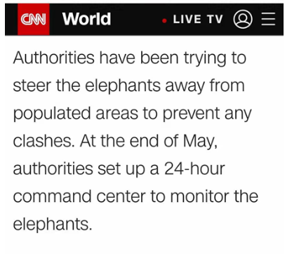 ▼▼▼美国CNN报道称,为了防止任何人象冲突,中国甚至建立了一个24小时指挥中心来监控大象行踪。