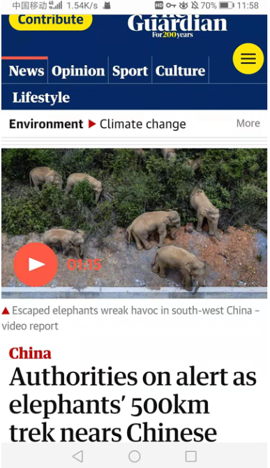 ▼▼▼英国《卫报》称,云南努力帮助它们返回它们的原始栖息地,这将让大象更加安全。