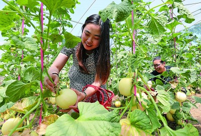 游客在河北河间市景和镇兴丰生态农场采摘。新华社发
