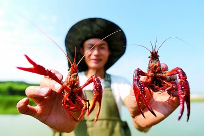 江西峡江县罗田镇新江村通过发展特色养殖业带动农民致富增收。图为村民收获小龙虾。陈福平摄/光明图片
