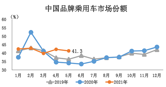 1-5月,中国品牌乘用车共销售350.7万辆,同比增长54.7%,占乘用车销售总量的41.6%,占有率比上年同期提升4.5个百分点。在主要外国品牌中,与上年同期相比,韩系销量有所下降,其他外国品牌均保持较快增长。