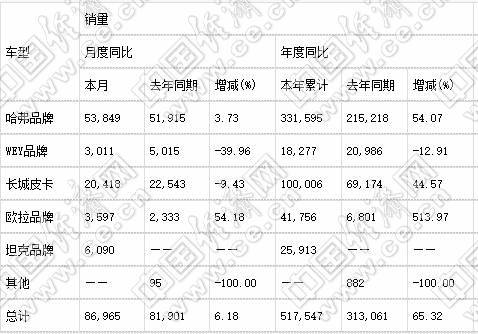 据长城汽车6月8日发布的数据显示,5月,长城汽车共销售新车86965辆,同比增长6.2%;1-5月的累计销量达517547辆,同比增长65.3%,已完成年度销量目标的46.21%。