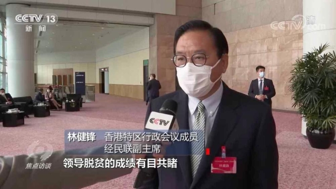 香港特区行政会议成员、经民联副主席 林健锋:在过去二三十年,领导脱贫的成绩有目共睹,步向小康之家不容易。在共产党的坚强领导下,我国的经济、人民的安定、经济的发展也是蒸蒸日上。