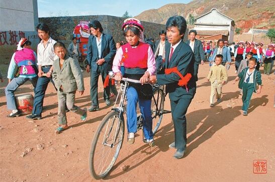 1989年,大理挖色乡用自行车接新娘的时尚队伍 刘建华 摄