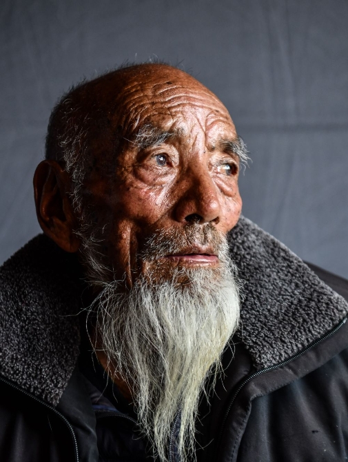 次多杰老人的肖像(4月25日摄)。