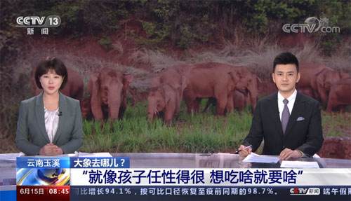 截至2021年6月14日18时,北移象群持续在玉溪市易门县十街乡活动。独象离群9天,位于象群东偏北方向,距离象群17.4公里。15头象均在监测范围内,整体平稳,人象平安。