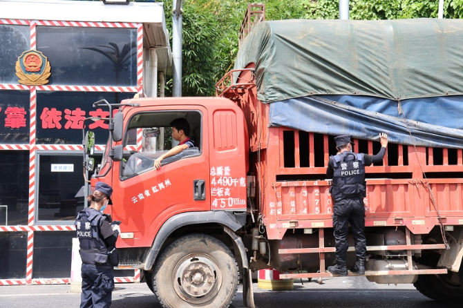 随着国内疫情管控形势持续较好,端午节来往河口边境地区的旅客也较平时有所增加,结合当前建党100周年和端午节安保维稳重大任务实际,该支队新街边境检查站全体民辅警不断加大对过往车辆、人员、货物的查缉力度,严格落实24小时双向查缉制度,坚决不放过一名可疑人员、一件可疑货物、一辆可疑车辆从执勤卡点通过,切实发挥好二线检查站防护过滤作用,筑牢安全屏障。