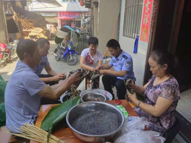 活动过程中,民警和辖区群众坐在一起,相互交流包粽子的方法技巧,折叶、封口、扎线,一片片清香的粽叶,一粒粒晶莹饱满的糯米,一个个香粽瞬间成型。民警与群众聊着家常,包着粽子,在一起回顾党的百年历史,共忆初心使命,普及端午习俗,群众家中弥漫着淡淡的粽叶清香,洋溢着欢声笑语,绘就了一幕幕警民一家亲的和谐画面。
