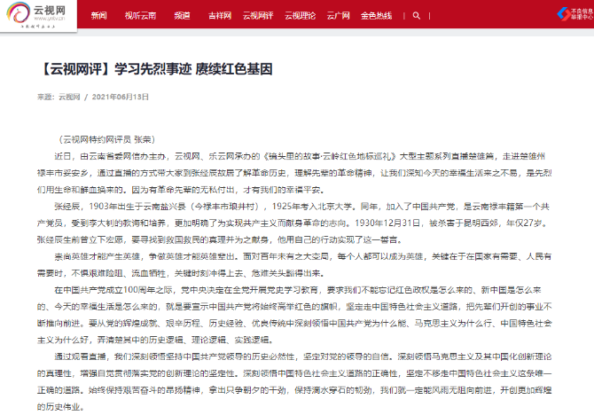 为满足广大电视用户在家观看精品视频内容的需要,云视网积极筹划在大屏端进行展播,云南移动IPTV(互联网电视)首页首屏推出《云岭红色地标巡礼》系列直播。