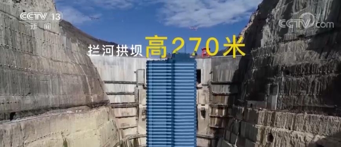 乌东德水电站的拦河拱坝高270米,相当于96层楼高。同时也是世界最薄的300米级双曲拱坝,大坝底厚51.41米,大坝最薄部分仅有11.98米。