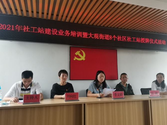 昆明信息港讯 记者李红鸾 6月17日,五华区民政局、大观街道办事处在大观街道新闻里社区进行“五华区大观街道率先实现社区社工站建设全覆盖”新闻通报,并组织开展了社工站建设业务能力提升培训暨大观街道社区社工站授牌仪式。