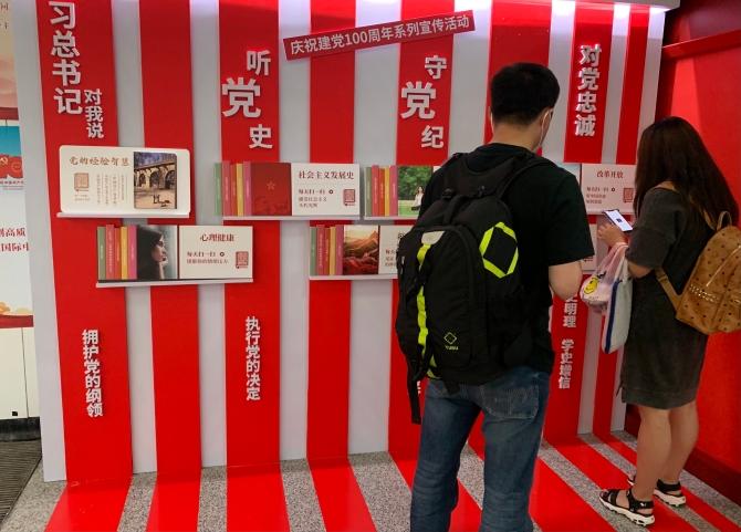 “妈妈,我要听这个。”一位母亲被孩子牵着来到白云路站的有声墙前,在妈妈的帮助下扫码开始收听《新中国史》书单里的读物,看着女儿听得津津有味的样子,王女士也扫开了自己感兴趣的书单,她说自己本身也喜欢看书,但是因为工作的原因没有太多的时间去细细翻阅,所有经常会听一些有声读物,没想到女儿受自己影响颇深,比她更爱听,只要有时间就会缠着她给她放。对于红色故事有声墙,她表示非常的的喜欢与赞赏,在建党节来临之际,大家可以在等人或者等地铁的空闲通过这些有声读物近距离聆听党的光辉历程,既能放松,又能学习。