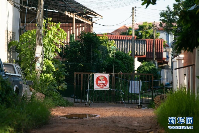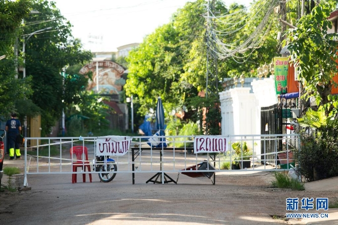 这是6月19日在老挝首都万象城区拍摄的因疫情较严重复杂被封闭的巷道。老挝政府19日宣布,鉴于邻国和首都万象新冠疫情形势,万象实施的“封城”措施再延长15天至7月4日。