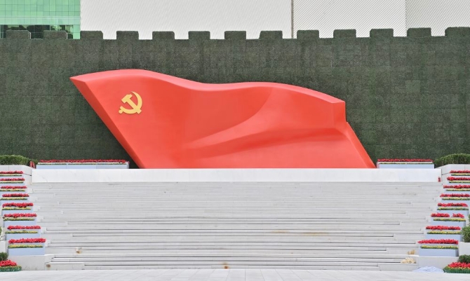 细节一:数字的特殊寓意。据介绍,《旗帜》的基座高1米,旗帜部分高7.1米、长21米,象征1921年7月1日。