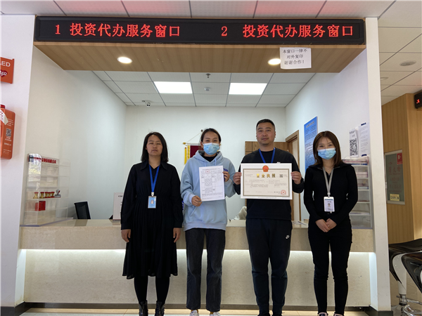 急企业所急,一天内协助企业取得营业执照。2021年6月8日9点10分,昆明锦希科技有限责任公司通过昆明市政务服务大厅了解,找到了市投资服务窗口,向中心提出了股权变更的需求,因为企业时间紧迫,中心在了解到企业需求后立刻派出服务专员全程陪同企业人员,多次往返经开区综合服务中心与企业,搜集、整理、填报、修改并提交资料,成功于当日取得营业执照,并在税务窗口帮企业做了税务变更,用高效便捷的服务,获得了企业的认可。