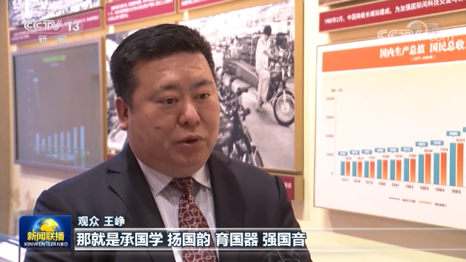 观众 王峥:我现在的工作岗位在中国音乐学院,我要把我的入党初心融入到我们学校的办学定位,那就是承国学、扬国韵、育国器、强国音。