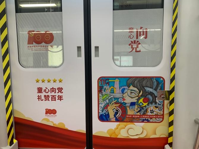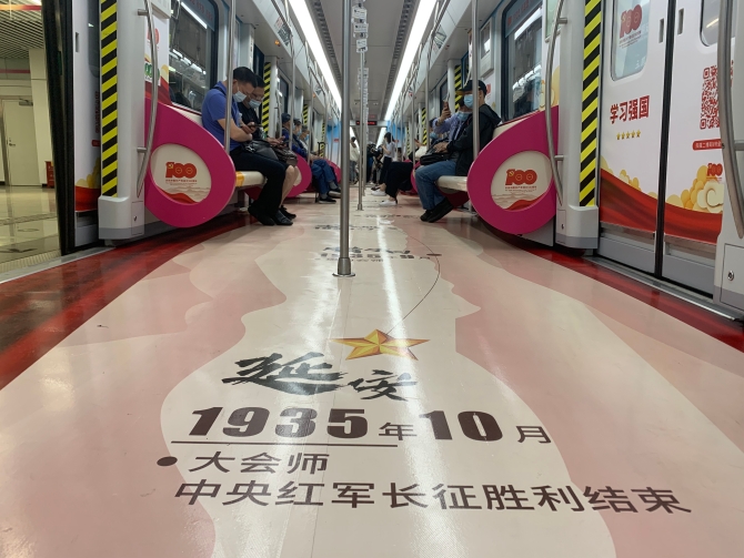 据悉,党史学习教育地铁专列通过营造浓厚的党史主题氛围、开展线上党史知识推送、下载“学习强国”APP、小程序互动等鲜活生动的形式,打造一条流动的红色课堂、实景课堂,让繁忙的地铁车厢“变身”移动的党史学习教育“加油站”,帮助乘客利用乘车的碎片化时间学习百年党史,接受红色熏陶,汲取奋进力量。