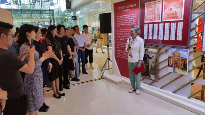 昆明美术家协会会员、昆明市侨联书画诗词协会会长台杨绍玉女士介绍自己的作品《云南陆军讲武学校》。