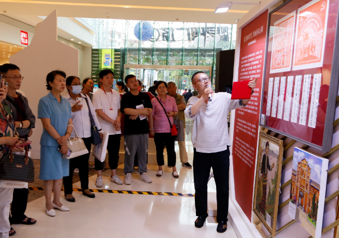 昆明市非物质文化遗产传拓技艺传承人张衡先生重点向现场观众介绍了自己传拓作品《军民鱼水情 党民一家亲》。