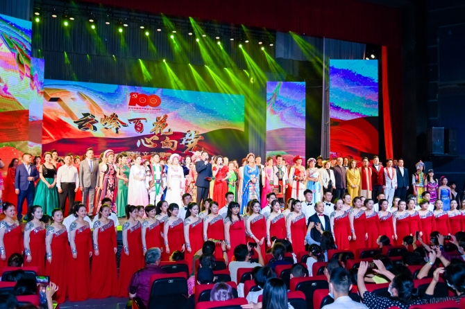 昆明信息港讯 记者甘凌菲 “立足新时代、展望新征程、弘扬主旋律、传递正能量。” 6月22日晚,由云南省文学艺术界联合会主办的“云岭百花心向党”云南文艺界庆祝中国共产党成立100周年文艺晚会在云南艺术剧院拉开帷幕,来自全省的优秀老中青艺术家、文艺工作者及云南籍在外青年演员们齐聚舞台,用极具云南民族特色的文艺作品礼赞中国共产党走过的100年光辉历程。