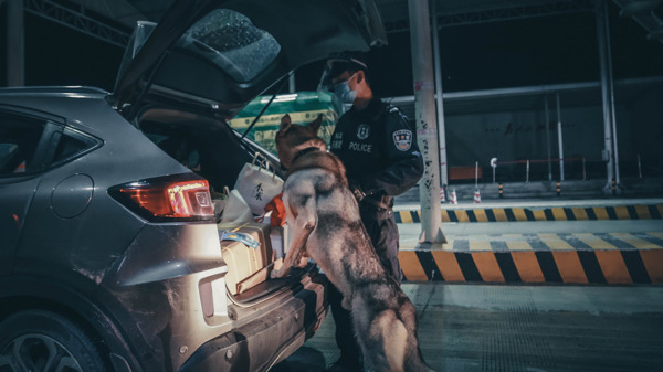 提起禁毒犬“飓风”,就不能不提到它的训导员杨欧。杨欧2018年被招录成为边境专职辅警后,来到大开河站,成为禁毒一线上的一名缉毒尖兵,累计缴毒20余公斤。优秀的工作成绩和踏实的工作作风让他成功被选为警犬训导员,前往昆明参加培训,也是在这里,他与“飓风”的相遇。从4月份到站后的两个多月里,物流车旁往往能见到杨欧和“飓风”的身影,搜查车辆671辆次,检查行李3643件,快递包裹无数。
