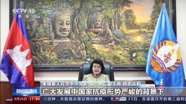 柬埔寨人民党中央常委 国会第二副主席 昆索达莉:在新冠肺炎疫情全球蔓延、广大发展中国家抗疫形势严峻的背景下,中国挺身而出,通过政党、政府和民间等多个渠道向有关国家紧急援助,为遏制全球疫情蔓延作出了突出贡献。