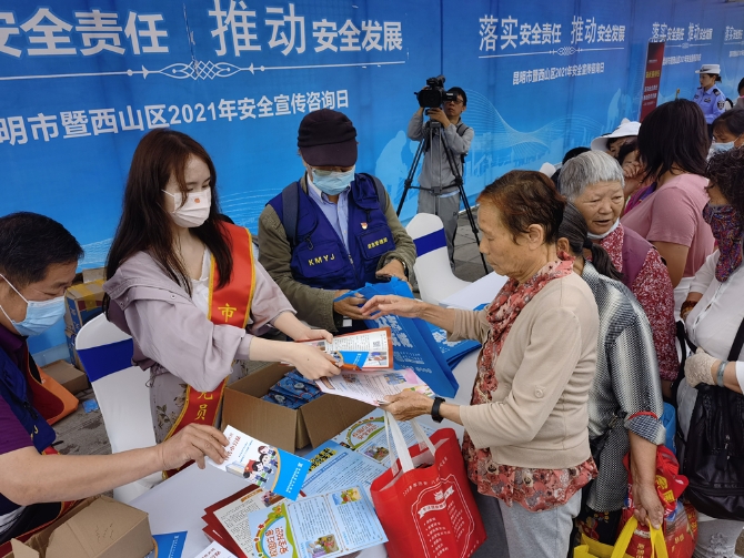 本次安全生产咨询日活动,主题为“落实安全责任 推动安全发展”,本次活动由昆明市安全生产委员会主办,昆明市应急管理局、西山区人民政府承办。共有市应急局、市发改委、西山区自然资源局、西山区交警大队等23家市、区相关部门参加。活动现场,各家单位通过宣传展板展示、发放宣传资料等方式,大力宣传安全生产、应急管理、防灾减灾法律法规、安全应急知识和技能,增强全民安全应急意识和能力。
