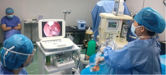 吴小鲜为肖阿姨施行全麻下“右眼微创鼻内镜下泪囊鼻腔吻合术”