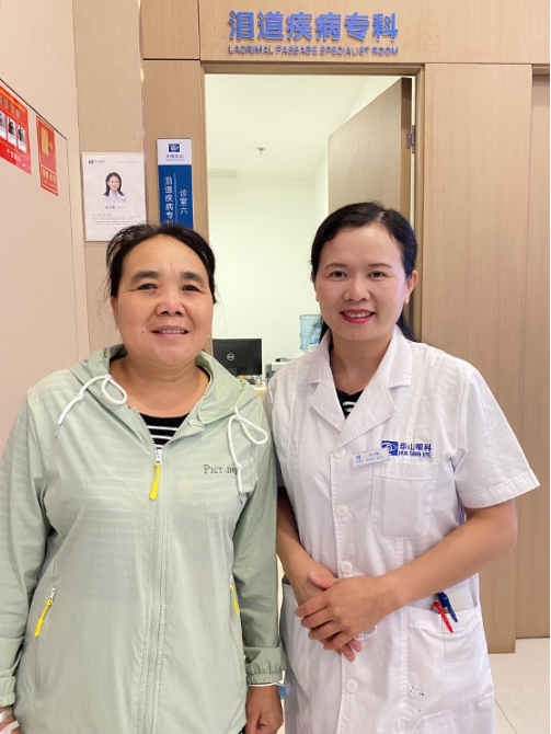 经过详细检查和制定手术方案,吴小鲜医生为肖阿姨进行了全麻“右眼微创鼻内镜下泪囊鼻腔吻合术”。手术十分顺利,成功避免了泪囊区破损疤痕、泪道阻塞等后遗症,泪道功能完全恢复,术后3天肖阿姨恢复良好,右眼肿胀情况消失,困扰她2年多的泪囊炎也彻底治愈。“手术前眼睛疼得不行,还无故流眼泪。手术做完后,眼睛一点也不疼了,流眼泪、流脓的症状也消失了!”肖阿姨激动地说。
