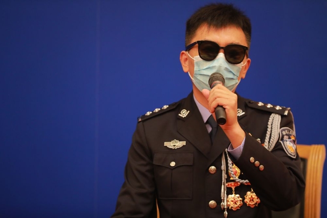 云警官是他的代称。黑色墨镜与口罩,遮挡了真容。这是他第一次面对媒体。