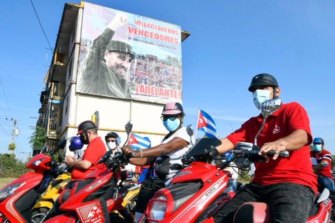 4月25日,古巴多地举行游行活动,几千名参与民众要求美国解除对古巴近60年封锁。新华社发(华金·埃尔南德斯摄)