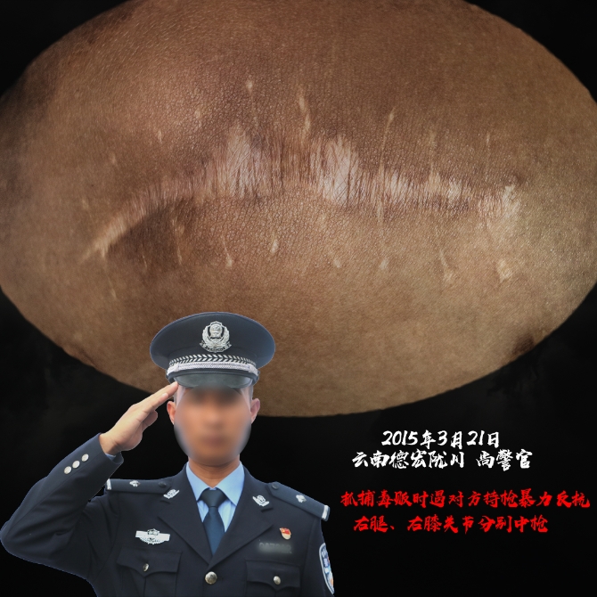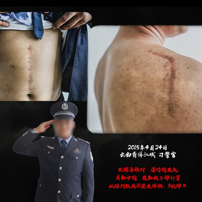 “干禁毒这行,哪个没有流过血、受过伤?”这是一位禁毒民警曾说过的话。禁毒民警是公安队伍里最危险、牺牲最多的警种之一,2017年以来全国就有33名禁毒民警牺牲、64名禁毒民警负伤,在与毒贩交锋中,受伤、流血是家常便饭,献出宝贵的生命也在所难免,他们中的大多数将伤痕留在了自己身上,成了一道道永远无法抹去的“勋章”。(昆明信息港 记者合宇聪 云南省公安厅供图)