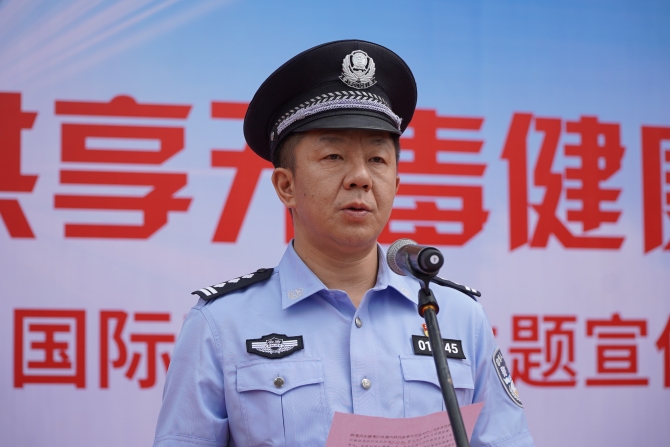 在主会场活动现场,盘龙区禁毒委副主任、副区长、昆明市公安局盘龙分局局长马伟代表盘龙区禁毒委致辞,对盘龙区2020年禁毒工作做了回顾,阐明了动员全社会力量共同参与禁毒斗争