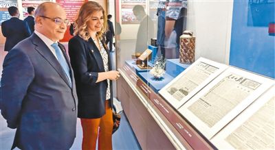 6月24日上午,100多位外国驻华使节和国际组织驻华代表来到中国共产党历史展览馆,参观“‘不忘初心、牢记使命’中国共产党历史展览”。图为约旦驻华大使胡萨姆·侯赛尼(左)与黎巴嫩驻华大使米莉亚·贾布尔观看展品。记者 张博岚摄