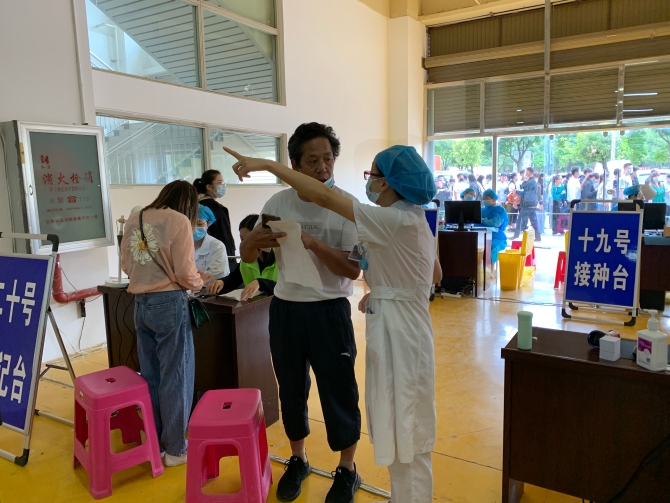昆明市第一人民医院党群工作部副主任、团委书记张翀告诉记者,27日市一院共派出5个医疗队共计67人支援高原明珠接种点接种任务。昆明延安医院现场协调负责人孙墨龙表示,延安医院27日派出60人的医疗保障队伍。“医院有疫苗接种资质的护理人员基本都抽调过来了。”孙墨龙说道。