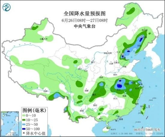 6月28日:阵雨转中雨,18~26℃,偏南风2~3级;