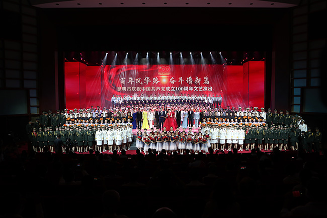 昆明信息港讯 记者孙红亮 百年风华路,奋斗谱新篇。6月27日晚,昆明市庆祝中国共产党成立100周年文艺演出在昆明会堂举行。