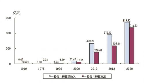 地方财力不断增强:2020年,全市一般公共预算总收入达813.32亿元,是1949年的11504倍,年均增长14.1%。全社会劳动生产率大幅度上升,由1979年的0.05万元提高到2019年的15.42万元。