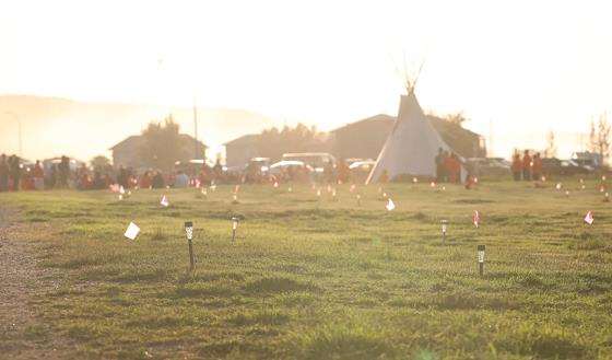 加拿大萨斯喀彻温省考维塞斯(Cowessesse)第一民族当地时间6月26日19时51分,在玛丽瓦尔(Marieval)举行悼念仪式,祭奠玛丽瓦尔印第安寄宿学校旧址发现的751个无标记墓穴里的亡灵。当天晚上,人们穿上橙色的衣服,点起了751盏灯,代表着751个无标记墓穴中的所有亡灵。在原住民的传统鼓声、歌声和祈祷声中,人们以传统的方式祝福这些亡灵得到安宁。