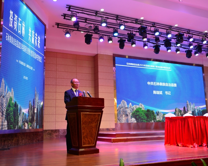 石林县委副书记、县人民政府县长普建勇通过聚焦投资环境、梳理发展机遇、介绍发展举措等对石林县进行推介,并诚挚邀请广大企业家考察石林、投资石林、共赢未来。华润现代中药(昆明)有限公司、融创中国石林环球融创置业有限公司等企业负责人代表落地石林的企业作交流发言,表达了对石林投资环境的充分肯定。