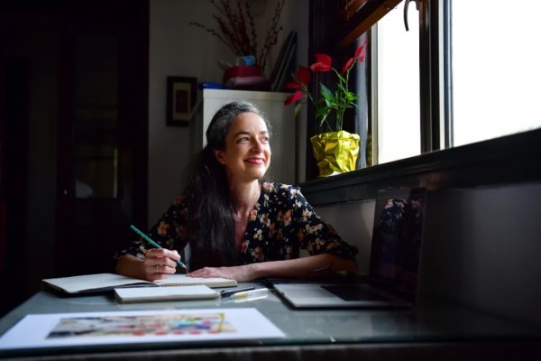 “如果你看过我书中的漫画或我微信(公众号)上的漫画,就知道我所要表达的主要是我作为一个法国人在上海的生活。我不需要很宏伟的东西,可以从非常小的事情中得到灵感。”就像这弄堂里,小小的房间,既是她的家,也是她工作的地方。“我在这样的小弄堂里工作,常常会看到邻居窗外晾晒的衣服,这是非常中国化的画面,实际上是中国人的日常生活,给了我很大的灵感。一些小细节,比如一扇门、一个鸟笼,都会给我带来灵感。”