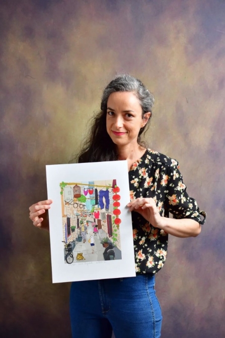“上海对我来说,不是城市天际线和摩天高楼,而是那根挂着衣服的晾衣竿。”她的一幅画最近成了网红,画里是上海这座城市的日常。“这不是一条真实存在的小巷子。这是一条我想展示的、通过各种细节建立起来的小巷子。里面总会有一辆自行车、一辆摩托车和一只狗。这都是我对上海的感觉,我把这种感觉放到画里面。让我高兴的是,大家都喜欢它,因为大家也有同样的感受。”