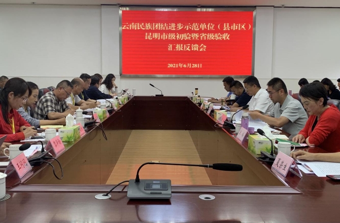 云南民族团结进步示范单位(县市区)昆明市级初验暨省级验收汇报反馈会现场 张敏/摄