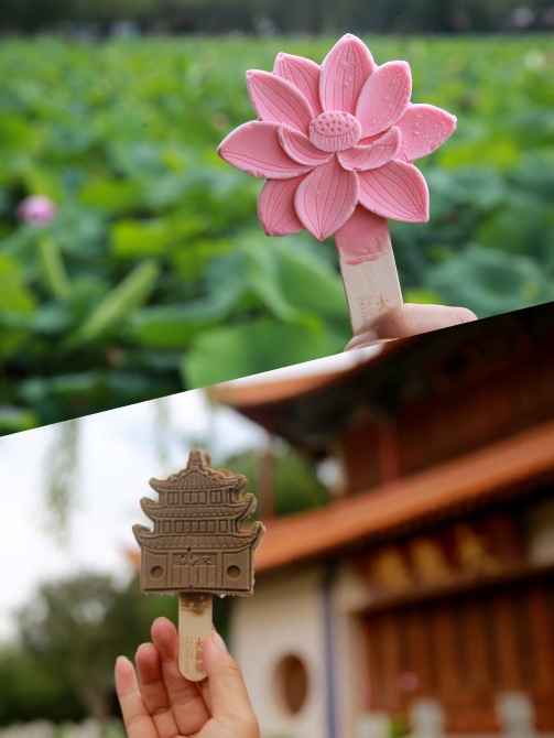 今年夏日,大观公园还首次推出大观楼与荷花造型的文创雪糕。文创雪糕由大观公园授权,唛淇啉公司生产,采用纯手工制作,有鲜奶、抹茶、草莓、咖啡4种口味。如果你品尝过蓝花楹雪糕、讲武堂雪糕,那么大观公园这款文创雪糕也不容错过,游客可以在欣赏美景之余,感受一番独属大观楼的夏日香甜。(供图:小蜜蜂)