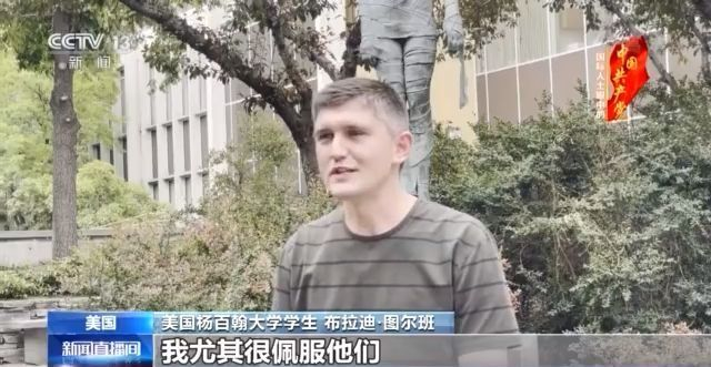 美国杨百翰大学学生 布拉迪·图尔班:中国的发展很惊奇,很不可思议。我看到他们的科技发展,他们的高铁。我尤其很佩服他们把国家联合(团结)起来,这个很棒,我们美国人也可以从中学习,未来也可以与他们合作。