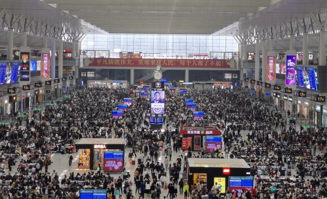 上海虹桥站候车大厅内,旅客们在有序候车 (图片来源:上海铁路)